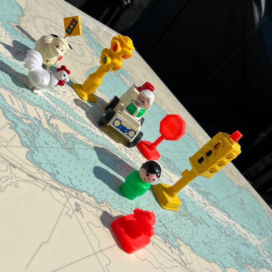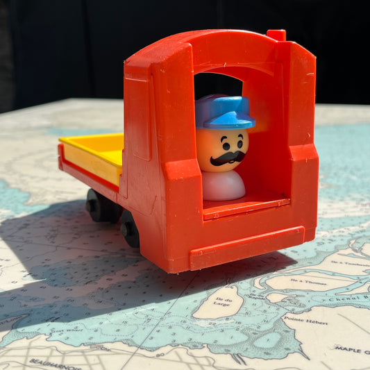 Vintage 70s Fisher Price Lift N Load Flatbed Train Car and Conductor