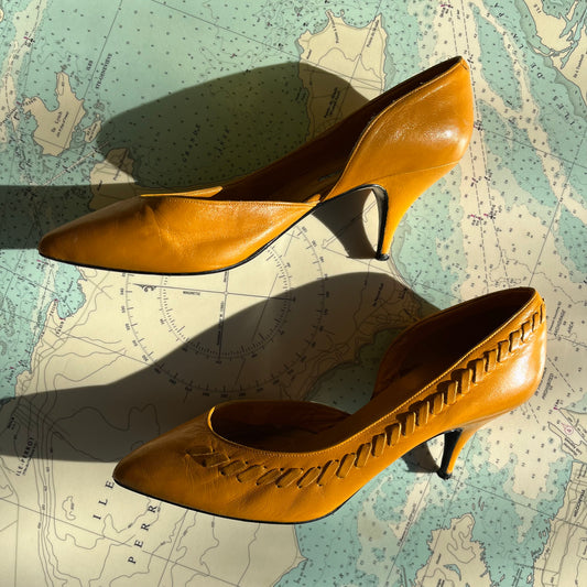 Vintage 90s Yellow Leather Le Château Heels 6.5
