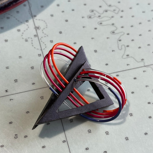 Vintage 80s Mod Mixed Media Brooch Pink / Orange / Purple