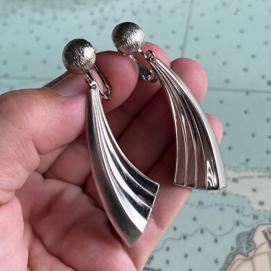 Vintage 80s Mod Wave Silver Clip On Earrings