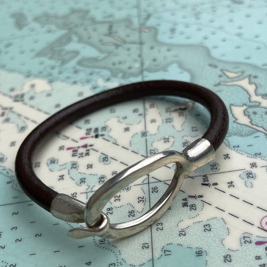Vintage 90s Leather and Silver Hook Minimalist Bracelet