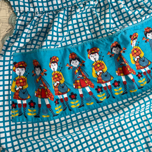 Vintage 60s Scottish Piper & Highland Dancer Half Apron