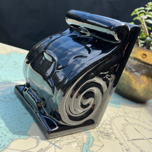 Vintage High Gloss Black Ceramic Scroll Decorative Bookend
