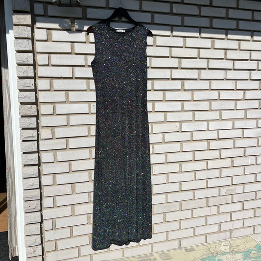 Vintage 90s Ronni Nicole Black Disco Diamond Maxi Dress