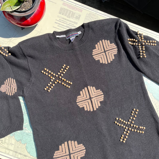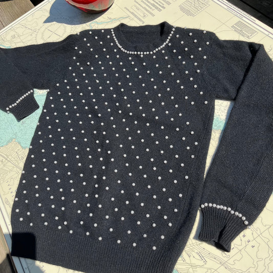 Vintage 80s Black and Pearl Beaded Sweater