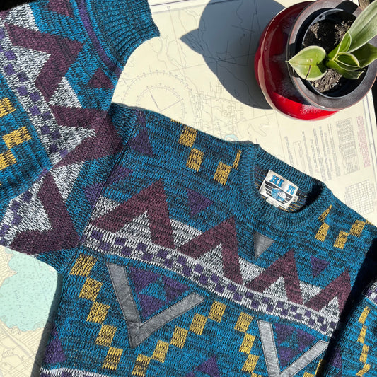 Vintage 90s Hi Yu Leather Trimmed Dad Sweater