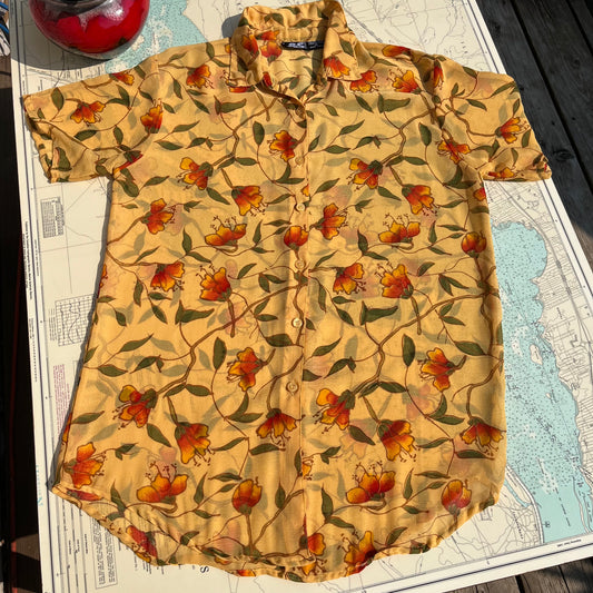 Vintage 90s Sheer Floral L& S Polyester Blouse