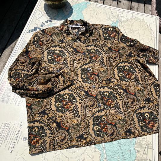 Vintage 80s Clandestine Paisley Polyester Blouse