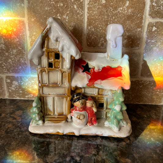 Vintage Ceramic Snowman House Tealight Holder with Stars