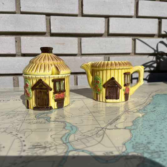 Vintage 50s Cottage / Tiki Cream and Sugar Set