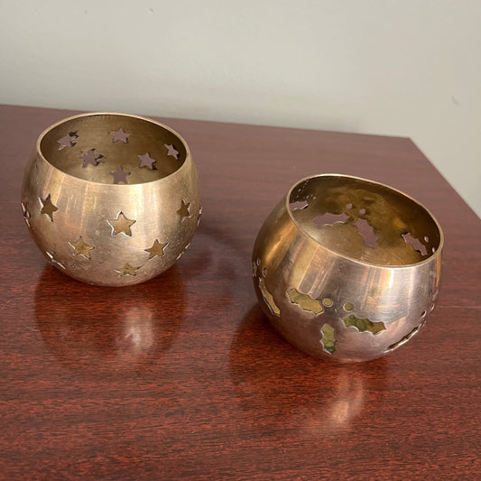 Vintage Brass Cut Out Christmas Tea Light Holders (2)