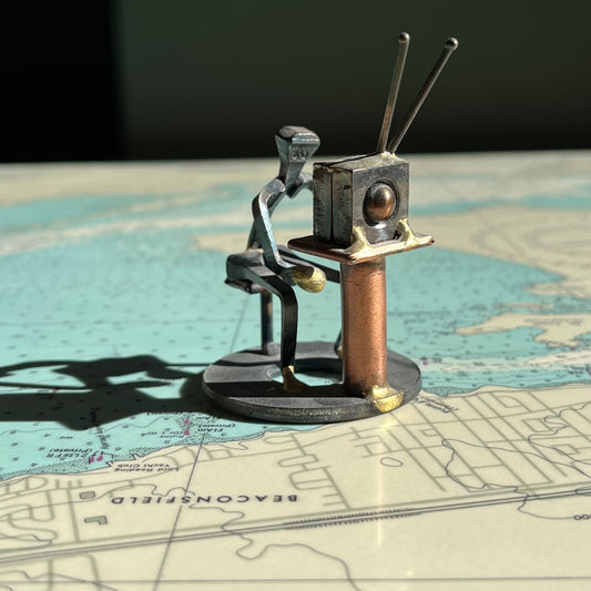 Handmade Metal Assemblage Man Watching TV Mini Sculpture
