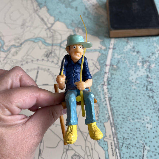 Vintage 70s Fisherman on Dock Wilton Cake Topper