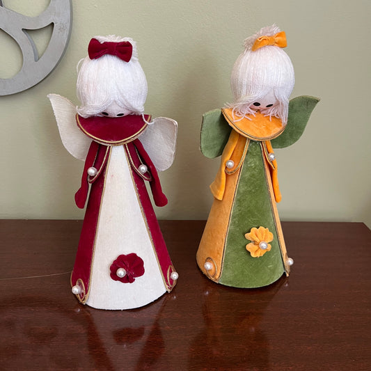Vintage 70s Velvet Christmas Angels