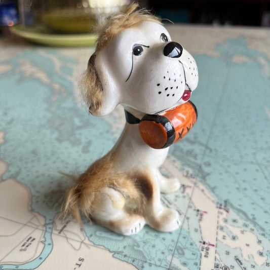 Vintage Ceramic Dog Figurine with Fuzzy Fur