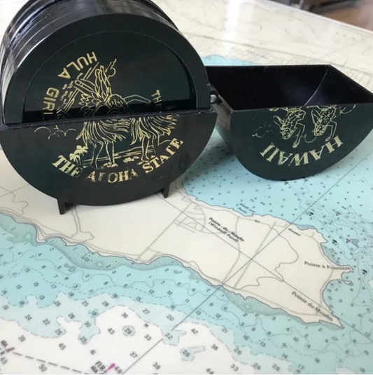 Retro Hawaii Hula Girl Plastic Souvenir Coaster Set