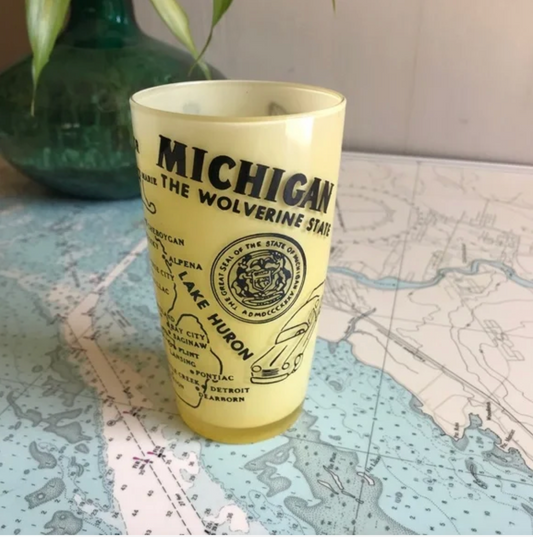 Vintage Michigan State / Lake Michigan Graphic Tourism Glass