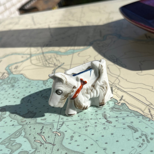 Vintage White Ceramic Scottie Dog Toothpick Holder
