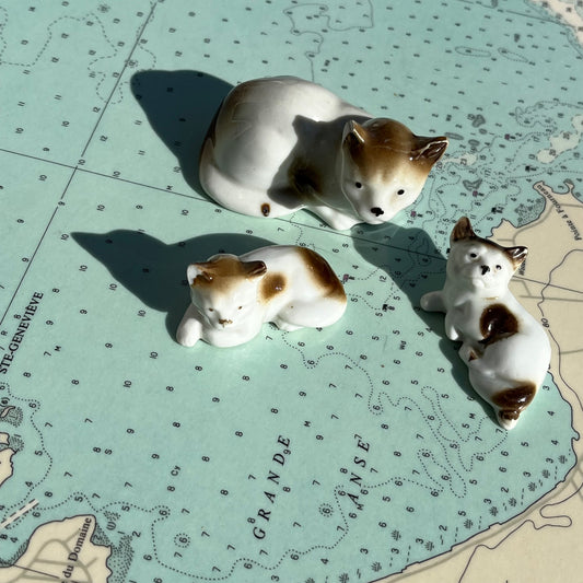 Vintage Porcelain Cat with Kittens Figurines