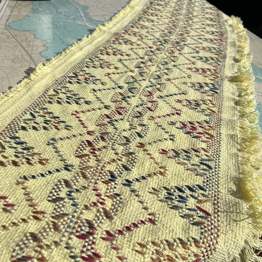 Vintage Yellow Knit / Embroidered Table Runner