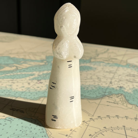 Vintage Hand Carved White Alabaster Stone Caroller
