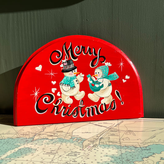 Hand Painted Merry Christmas Snowman Sign