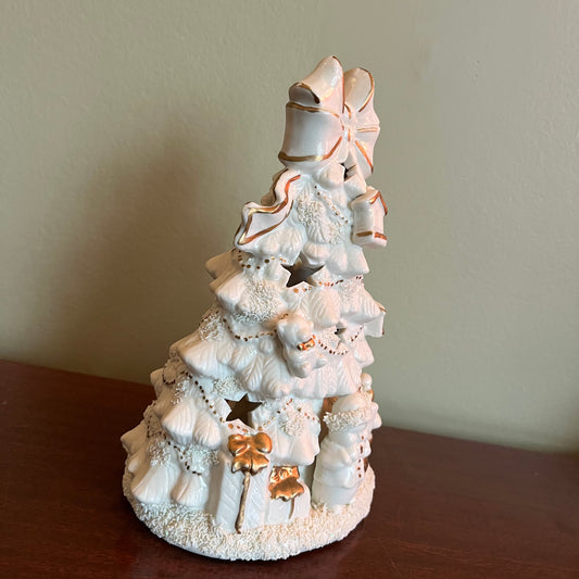 Vintage 90s White Ceramic Christmas Tree with Stars