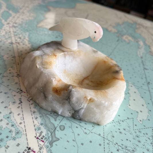 Vintage Agate Carved Parrot Ashtray / Dish