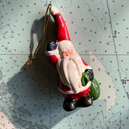 Vintage Hand Painted Ceramic Santa Christmas Ornament