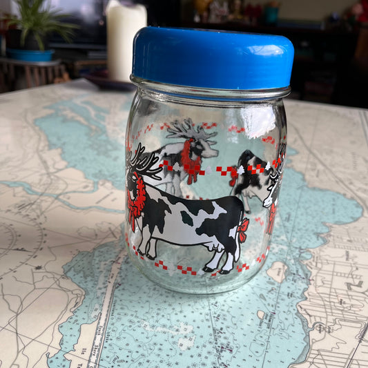 Vintage Cow / Reindeer Graphic Christmas Jar