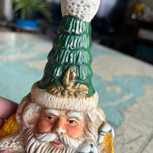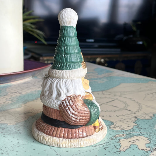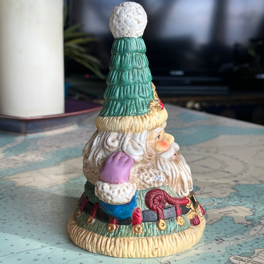 Vintage 90s Ceramic Santa Claus Bell Christmas Decor Green Jacket