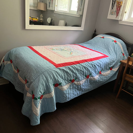 Vintage Handmade Smurfs Quilt