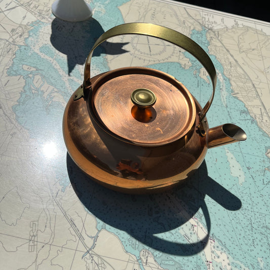 Vintage Round Copper Kettle with Hinged Handle