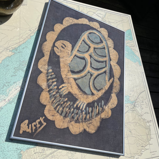 Vintage Handmade Batik Turtle Framed Artwork