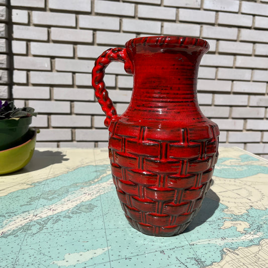 Vintage Carstens Two House Red Ceramic West German Vase / Jug with Handle