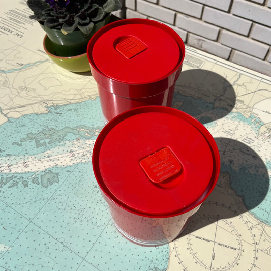 Vintage Erik Kold Plastic Retro Red Striped Canisters / Containers