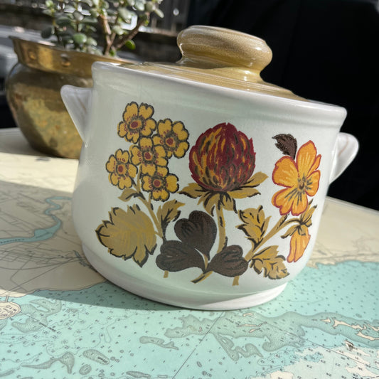 Vintage 70s Sadler Stoneware Clover Covered Bean Pot
