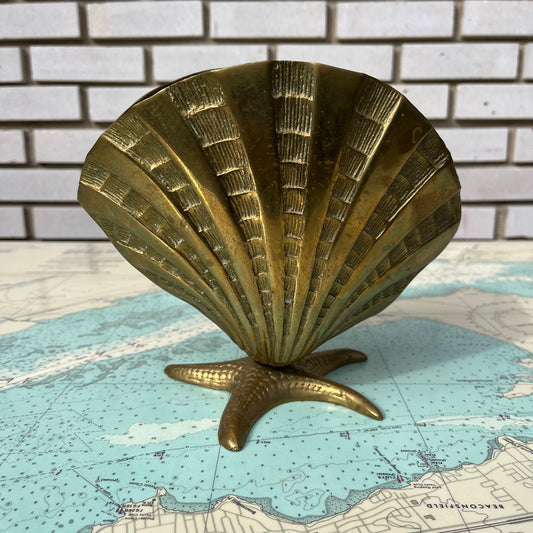 Vintage Brass Sea Shell and Starfish Vase / Planter / Decor