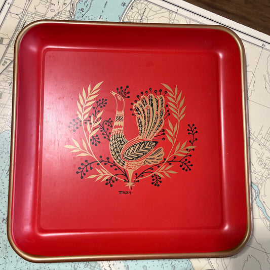 Vintage Maxey Red Rooster MCM Tray Set (4)