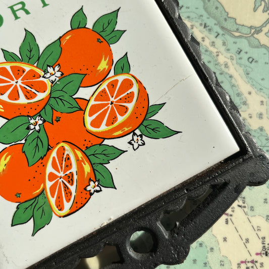 Vintage Cast Iron Trivet with Florida Oranges Graphic