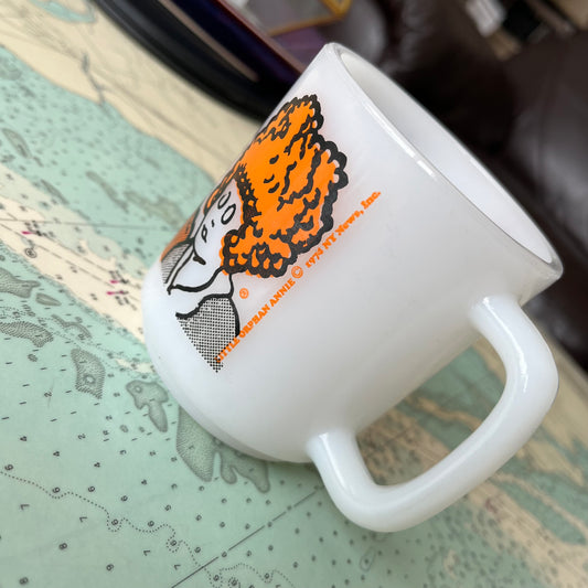 Vintage 1974 Annie Leapin' Lizards Milk Glass Mug