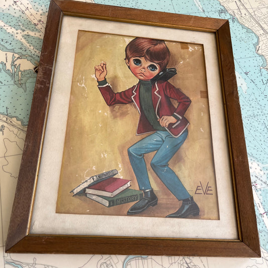 Vintage Big Eyes Boy Dancing by Eve Framed Print