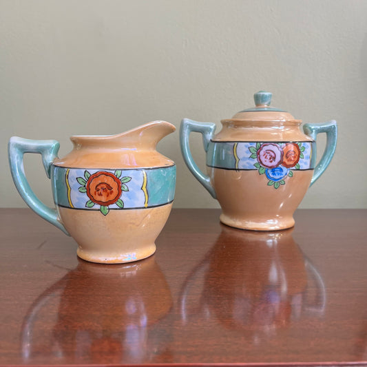 Vintage Trico Floral Lustreware Cream and Sugar
