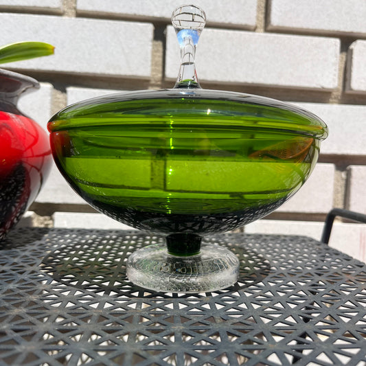Vintage Green Glass Art Deco Candy Dish with Lid
