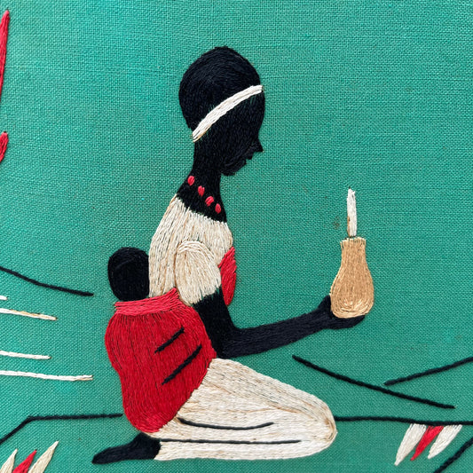 Vintage Mother & Child Embroidered African Folk Art