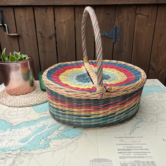 Rainbow Wicker Picnic / Sewing / Storage Basket with Hinged Lid