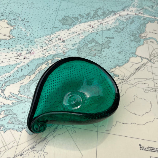 Vintage Green Bubble Glass Teardrop Vessel / Ashtray