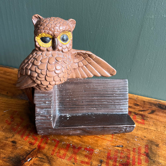 Vintage 70s Owl Ceramic Business Card Holder