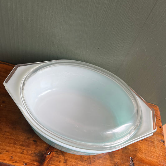 Vintage Teal Snowflake Pyrex 1.5 QT Casserole Dish with Lid