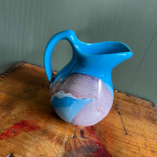 Vintage 60s Mini Blue and Purple Drip Glaze Pitcher